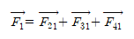 두 개 이상의 점전하가 모인 계를 다점전하계라고 하며, 만약 삼차원 상에 입자 2, 3, 4가 입자 1에 전기력을 작용한다면 합력은 다음과 같다.