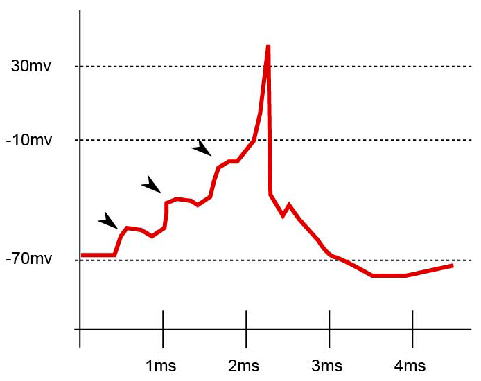 활동전위는 일반적으로 시냅스 전 뉴런에서 온 흥분성 시냅스 후 전위(excitory postsynaptic potential, EPSP)에 의해 촉발된다.