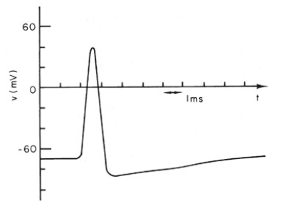 - 휴지전위는 약 -65~-70mV의 값을 갖는다.