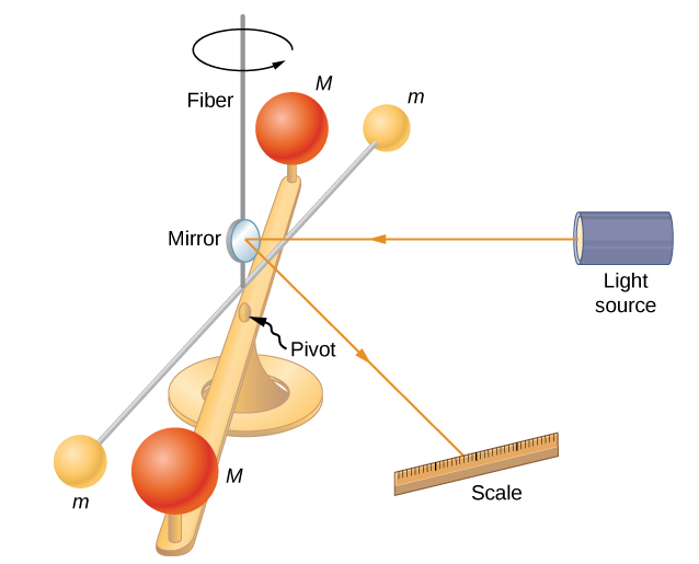 [3] 수정섬유가 비틀려 작용하는 탄성력과 질량 사이의 중력이 균형을 이룰 때 작은 구들은 새로운 평형위치에 도달한다.