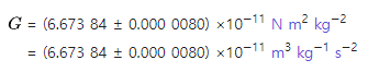 - 현대에는 만유인력 상수 G를 대략 6.673×10^-11[N·m2·kg^-2]로 근사하여 사용한다.