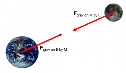 잉글랜드의 위대한 수학자이자 물리학자인 뉴턴 (Sir. Isaac Newton, 1642-1727) 은 달을 지구로 돌게 하는 원인은 힘이며, 이 힘이 물체의 속도를 변화시킨다고 주장했다. 뿐만 아니라, 1687년 그는 지구와 달 사이에 작용하는 힘인 중력의 법칙(law of universal gravity)을 다음과 같이 발표했다.