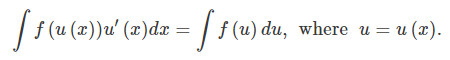 만약 u=g(x)가 구간 I를 치역으로 갖는 미분가능함수이고, f가 I위에서 연속이면 다음과 같다.