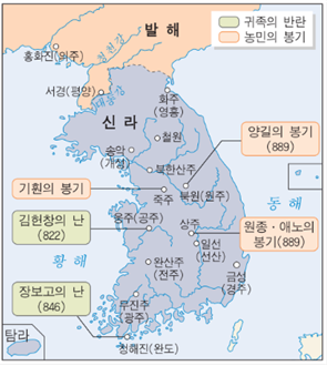 - 선덕왕 이후 호족이 득세하면서 전국이 불안정과 혼란의 연속