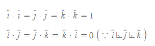 3차원 상에서 단위벡터는 [그림 6]과 같이 나타나며 이들을 서로 스칼라곱한 결과는 다음과 같다.