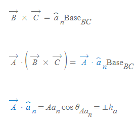 - 단위벡터 a_n은 벡터 B와 C의 가위곱 방향과 같다. 또한, Base_CB는 벡터 B, C의 가위곱 면적이다.