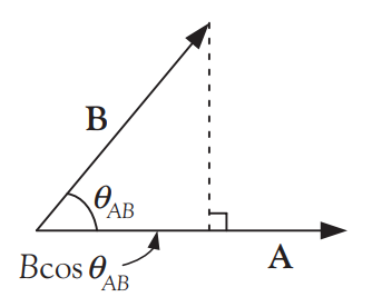 기하학적으로 점곱 AB는 벡터 A의 크기에 벡터 B의 벡터 A 방향성분 Bcosθ을 곱한 것과 같다.