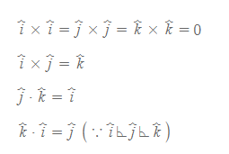 단위벡터의 가위곱은 가위곱의 성질에 따라 다음과 같이 정리된다.