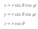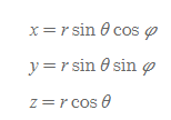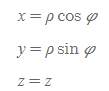 - 원통 → 직각: 원통좌표를 이용하여 직각좌표를 구하는 식