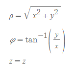- 직각 → 원통: 직각좌표를 이용하여 원통좌표를 구하는 식