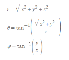 - 직각좌표 → 구좌표: 직각좌표를 이용하여 구좌표를 구하는 식