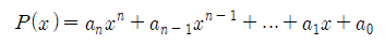 에 대해 P의 차수를 n이라 하고, deg(P)=n으로 나타낸다.