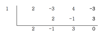 1. 식 19.3의 각 계수를 차례로 적는다. ⇒ 2, -3, 4, -3