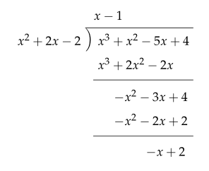 제시된 다항식의 나눗셈(P÷Q)에서 몫과 나머지는 다음과 같다. - S(x)=x-1 - R(x)=-x+2 - Q(x)=x^2+2x-2 |