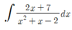 식 19.1의 피적분함수는 유리함수이고, 이 유리함수는 인수분해를 통해 간단한 분수의 합(식 19.2)으로 나타낼 수 있다.