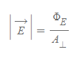 - 전기장의 크기는 전기력선에 수직한 면의 면적에 대한 전기력선의 개수로 정량적 계산이 가능하고 식은 아래와 같다.