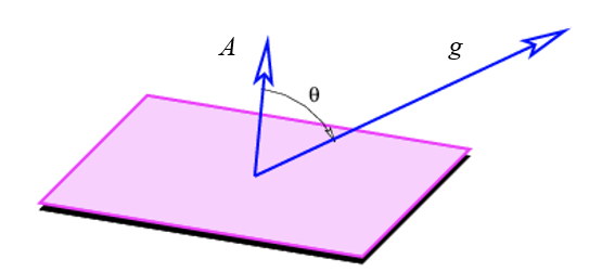 중력선속의 크기는 중력장 g와 면에 대한 법선이 일정한 각도 θ에 의해 영향을 받는다.