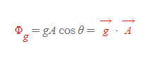 - 중력선속의 크기는 중력장 g와 면벡터 A(또는 면과 수직한 단위벡터 n) 사이의 각도 θ에 의해 최댓값과 최솟값이 결정되는데, 기존의 중력선속 식의 cos 값을 포함하여 두 벡터의 스칼라곱으로도 중력선속 식을 표현할 수 있다.