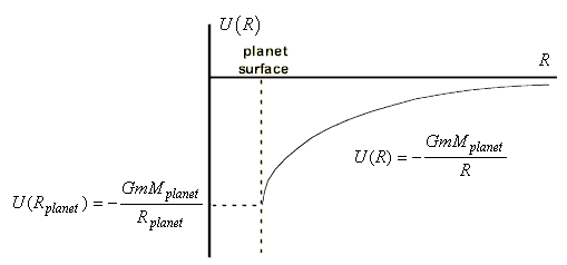 [2] 만유인력에 의한 퍼텐셜에너지란, 질량 m을 가진 물체가 중력이 작용하는 공간 내에서 힘을 받아 거리 r에서 무한대 거리까지 이동하면서 저장된 에너지이다.