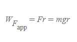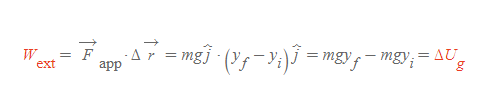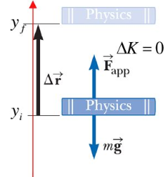 만약 [그림 1]과 같은 상황에서 질량이 m인 물체에 외력(external force) F_app를 작용하여 천천히 들어올린다고 하자. 변위를 r만큼 주었다면, (1)내가 물체에 해준 일은