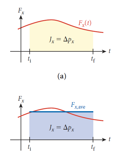 [1] 운동량의 변화량은 운동량과 힘의 관계식을 변형하여 다음과 같이 작성할 수 있다.