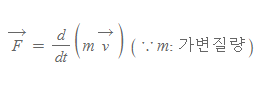 - 이 관계식은 질량이 보존되는 경우를 가정해 유도되었지만, 질량이 변하는 경우에도 아래와 같은 식으로 힘을 분석할 수 있다.