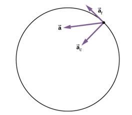 원형 경로를 따라 회전하는 한 점은 지름 가속도 벡터 a_r을 갖는다. 여기서 지름 가속도 벡터의 크기 a_r은 v^2/r이고 회전중심을 향한다. 이때 구심가속도 a_c는 지름 가속도의 크기와 같다.