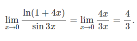 표 1에 근거해, ln(1+4x)는 4x로 sin3x는 3x로 근사시킬 수 있다.