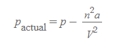 - p_actual: 기체 분자에 의한 실제 기체 압력 값