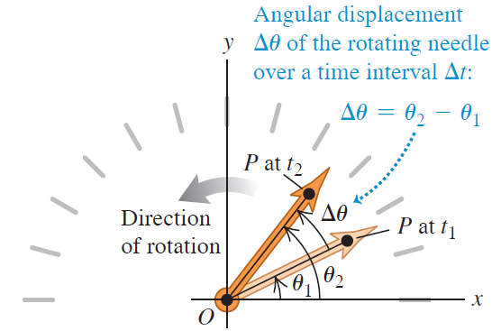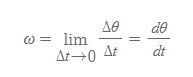각속도(angular velocity): 강체의 각변위를 그 변위가 일어난 시간 간격 Δt로 나눈 비율