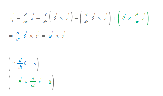 어떤 강체가 매우 짧은 시간 각을 가지고 회전하는 순간, 그 강체의 어떤 요소는 접선속도(tangential velocity) v_t[그림 2]를 갖는다.