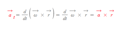 위 식의 cross vector 미분을 하면 접선가속도 식에서 각가속도의 벡터 식을 유도할 수 있다.