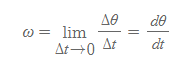 - 각속도: 강체의 각변위를 그 변위가 일어난 시간 간격으로 나눈 비율