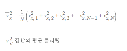 - 의미: N개 분자의 v_x^2값을 모두 더한 다음 N으로 나눈 값, 즉, 단일 기체가 갖는 x축에 대한 평균 속력 물리량