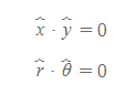 직각좌표계와 극좌표계에서의 단위벡터 내적은 다음과 같다.
