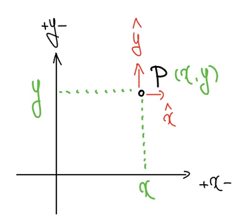 2차원의 좌표계에서 단위벡터는 다음과 같다.