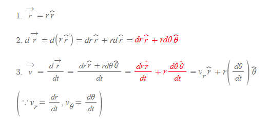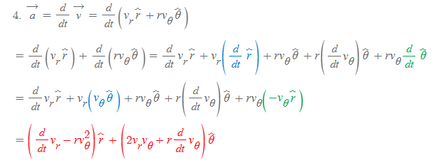 극좌표계에서의 가속도 벡터는 속도벡터를 시간으로 미분하여 구할 수 있다.
