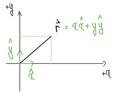 - hat x: y는 일정하게 유지한 채 x만 증가하는 방향을 갖는 x 단위벡터