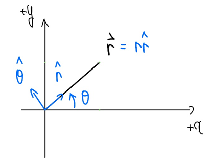 - hat r: θ는 일정하게 유지한 채 r만 증가하는 방향을 갖는 단위벡터