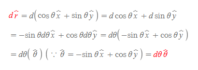 다음 단위벡터 r과 θ의 미분식을 구한다.