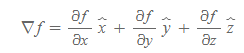 scalar function f를 f=f(x, y, z)라고 표현했을 때, del operator를 사용한 아래 식을 f의 그래디언트(gradient)라고 정의한다.
