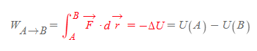 보존력(F)이 한 일(work)과 퍼텐셜 에너지의 관계는 다음과 같다.