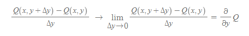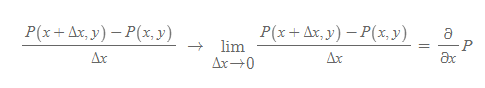 각각의 극한은 x에 대한 편미분, y에 대한 편미분으로 표현된다.