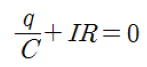 - q/C: 축전기의 전위차, 축전기의 전기용량 C로부터 유도된 값으로 q는 축전기에 저장된 전하량을 뜻한다.