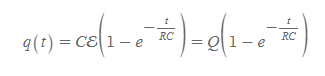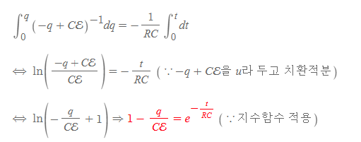 다음 양변에 -Cε를 곱하면, 충전 시 시간에 따른 전하량 함수를 구할 수 있다.