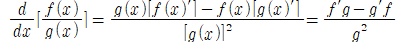 함수(구함수) f와 g가 모두 미분가능일 때, 함수들을 곱하거나 나누어 얻어지는 새로운 함수의 도함수 역시 구할 수 있다.
