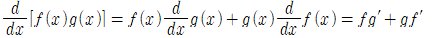 - 두 함수의 곱의 도함수는 앞의 함수에 뒤의 함수의 도함수를 곱한 값에, 뒤의 함수에 앞의 함수의 도함수를 곱한 값 둘을 더한 것과 같다.